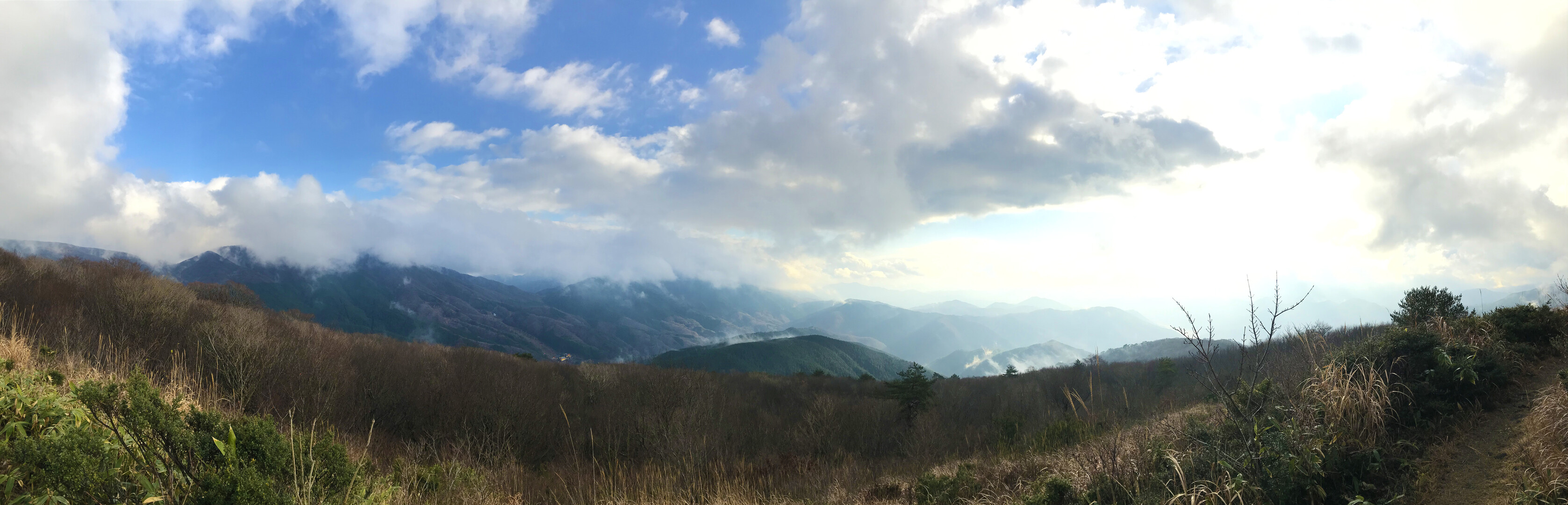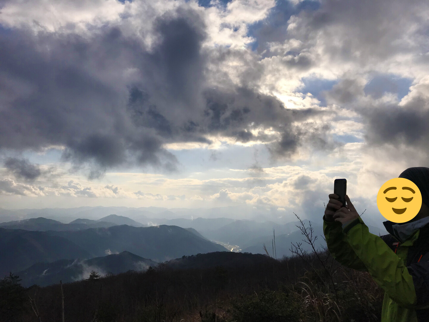 下山途中のビュースポットでまた少し晴れたので、最後に眺望も見られて雨天山行の苦労も報われました。