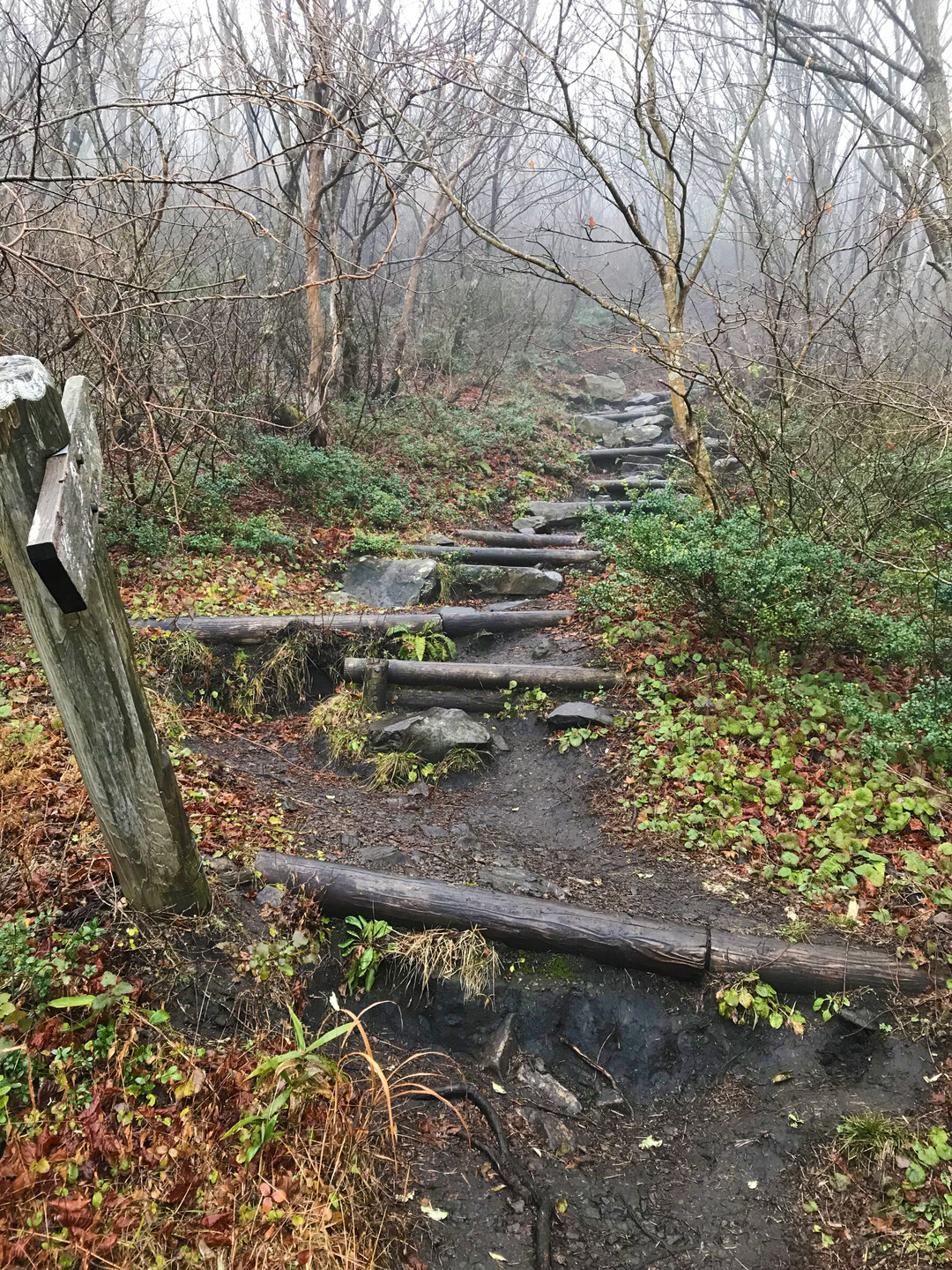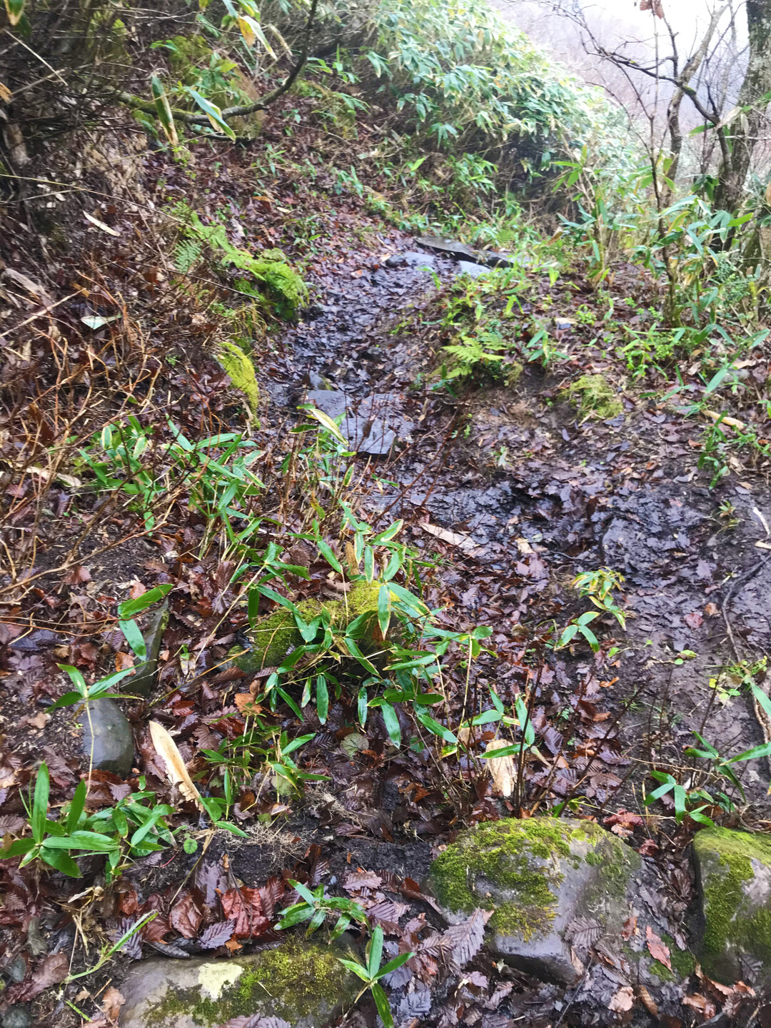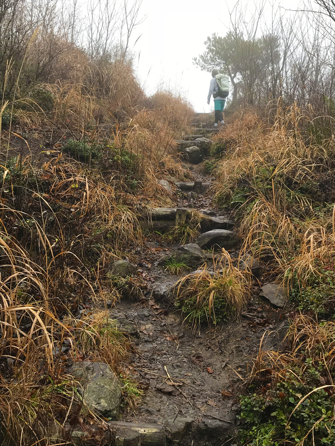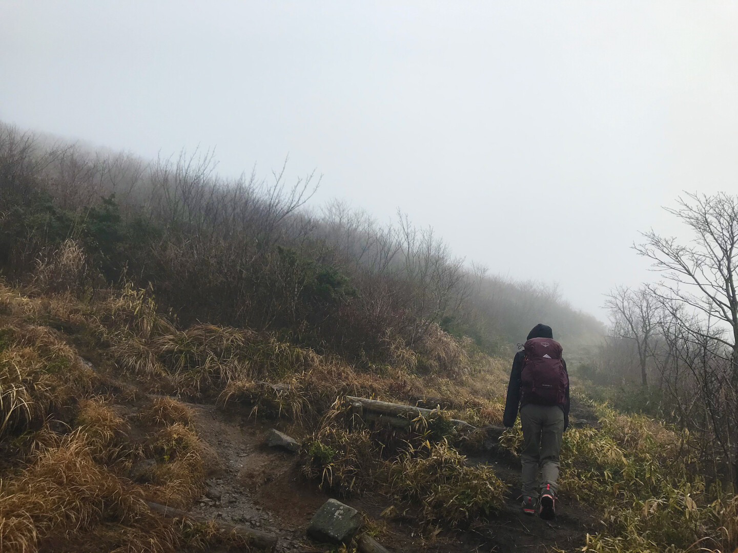 簡単な山だと思っていましたが、雨の中だと休憩できる場所もほとんど無くずっと歩き続けるので、足元が悪いのもあり、結構疲れました。
