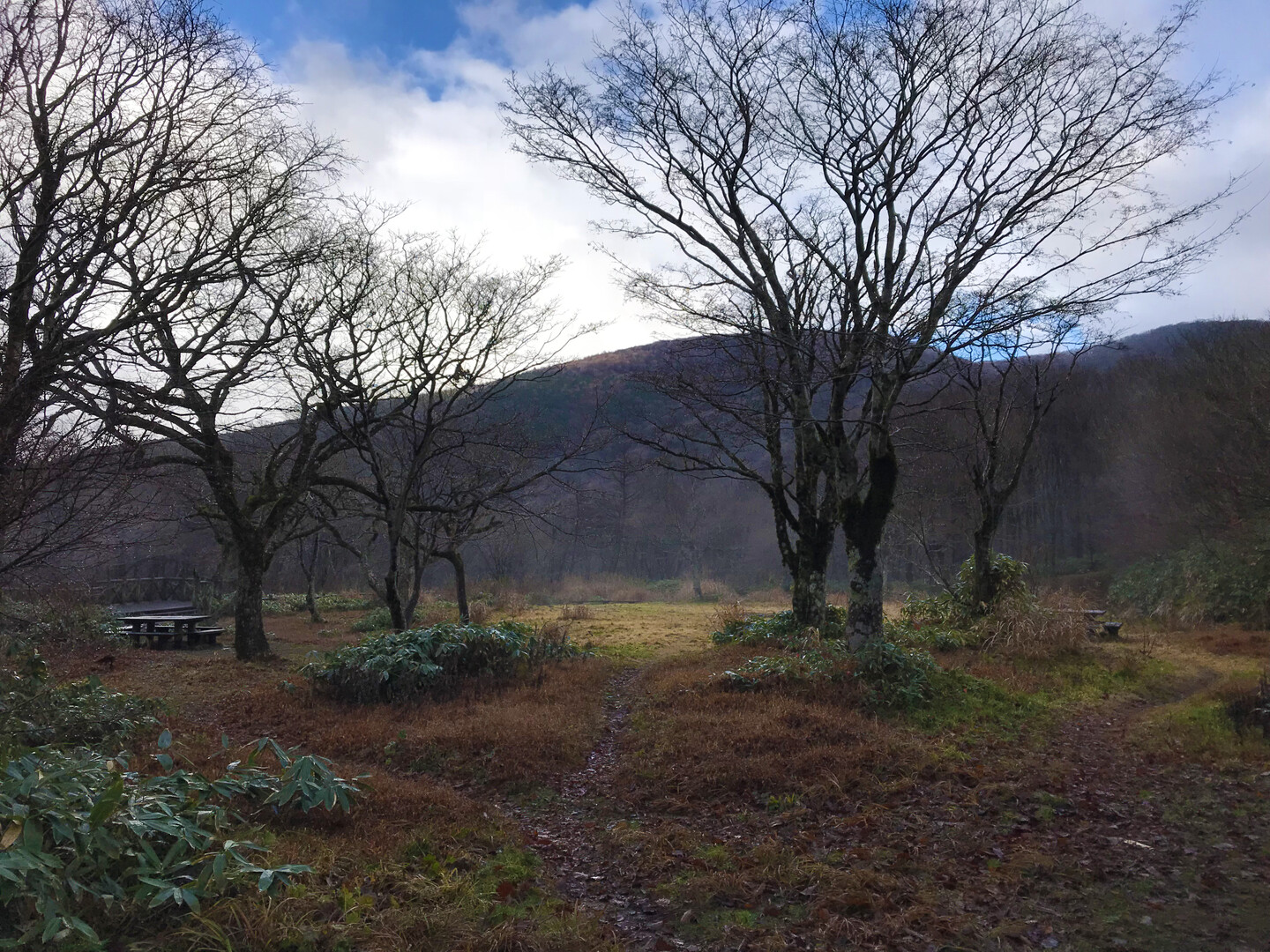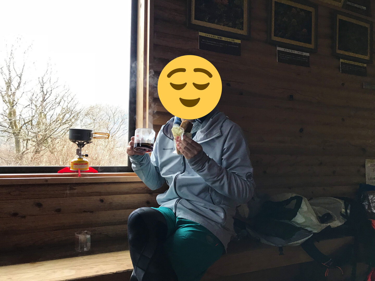 吾妻山と烏帽子山の間の、YAMAP上ではキャンプ場とされている箇所に大膳原避難小屋があり、お昼ごはん休憩にとっても助かりました。
